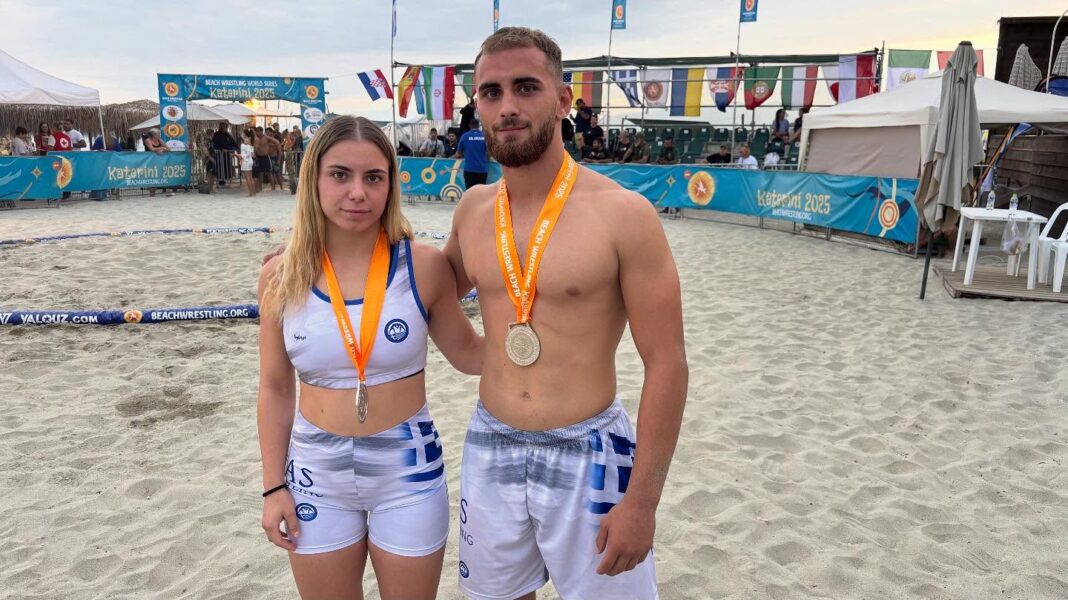 Διπλή μεγάλη επιτυχία για την Ελλάδα στο Παγκόσμιο πρωτάθλημα Beach Wrestling U20 που διεξάγεται στην Κατερίνη. Ο Ηλίας Καρνάβας και η